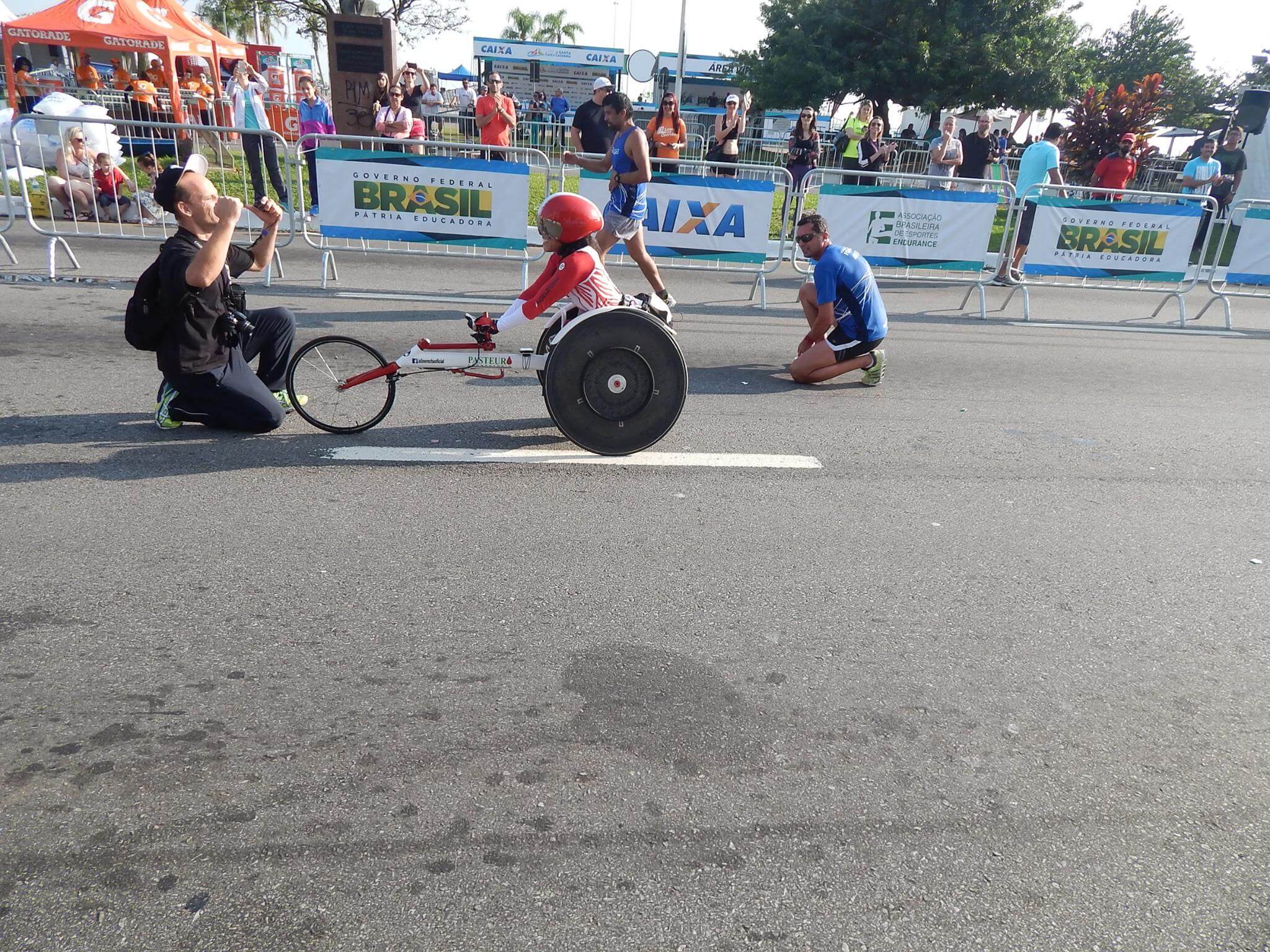 Única atleta inscrita na prova de cadeirantes, Aline Rocha travava um duelo contra si própria. Recordista brasileira da prova, a camponovense, que hoje compete por São Caetano do Sul – SP, completou a prova em 1h58min06seg, pulverizando o antigo recorde em quase 20 minutos.