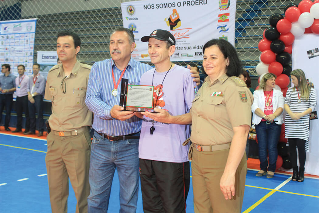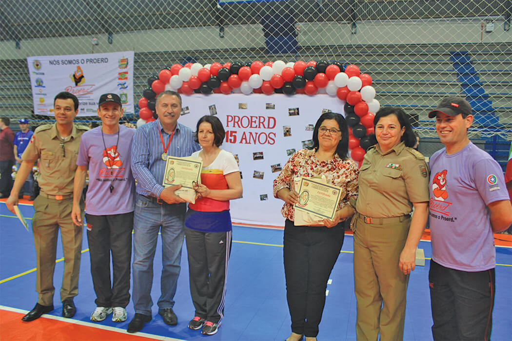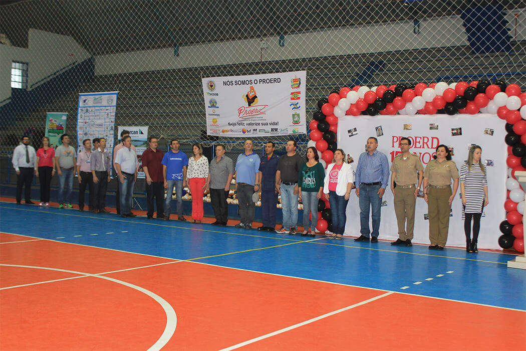 A abertura contou com a presença de patrocinadores e autoridades, entre elas da Tenente Coronel Lucimar Savaris, Comandante do 26º BPM de Herval D”Oeste. Na oportunidade foram entregues medalhas aos apoiadores, feita homenagem a professores que colaboraram no primeiro ano de instalação do Proerd em 2001, extensiva à todos os educadores que passaram pelo Programa nos últimos 15 anos. Também foi homenageado o Sargento PM Gilmar Marco Pereira, primeiro instrutor do Proerd no em Campos Novos.