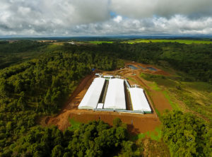 A unidade conta com 15 mil m² de área construída nos dois sítios. A granja tem um espaço de 80 hectares, com áreas de mata nativa e também com reflorestamentos.