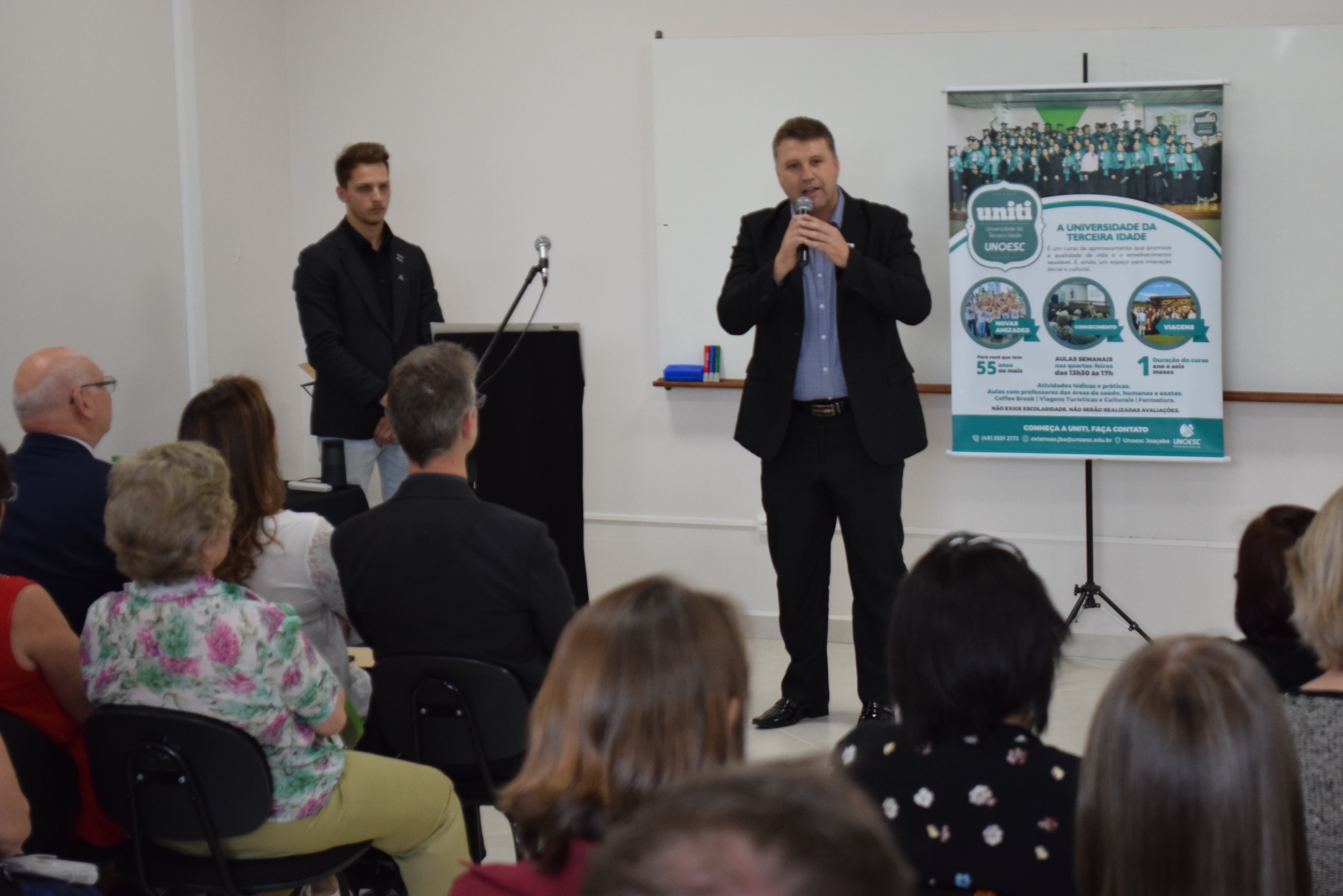 Dona Ivania Zanchetti é uma das participantes e fez questão de partilhar com os colegas o sentimento de estar frequentando a Uniti. “Estou em um momento da vida em que quero cuidar mais de mim e por isso tirei tempo para vir nos encontros. Cada dia será uma experiência nova que fará muito bem e nos fará viver mais e melhor”. Segundo o reitor da Unoesc, professor Aristides Cimadon, a Uniti é um programa especial de formação e de oportunidade de estudo para aqueles que não tiveram no passado. “Destacamos também a iniciativa do município através do prefeito Lucimar. É uma oportunidade grandiosa a esses cidadãos de Abdon que através das atividades estarão participando de momentos especiais enriquecendo ainda mais às suas vidas”, ressalta.