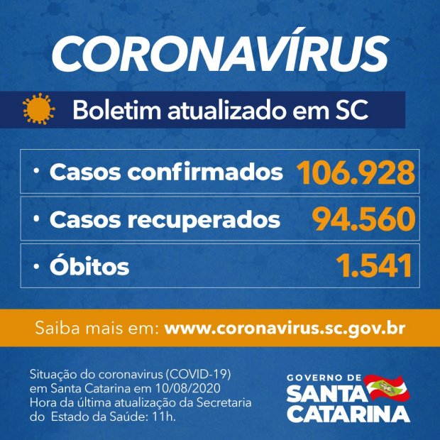 O Governo do Estado informou que há 106.928 casos confirmados de Covid-19, sendo que 94.560 estão recuperados e 10.827 continuam em acompanhamento. O dado foi divulgado nesta segunda-feira, 10. A doença respiratória causou 1.541 óbitos no estado desde o início da pandemia. Com isso, a taxa de letalidade é de 1,44%.