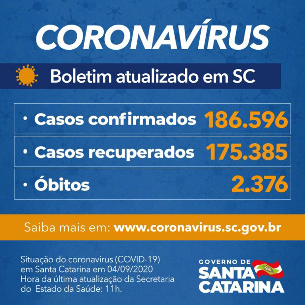 Todos os 295 municípios catarinenses já confirmaram ao menos um caso e 215 deles têm registros de óbitos. A maior quantidade de pacientes com Covid-19 está em Joinville, que registra 17.502 casos. Em seguida, estão Florianópolis (11.511), Blumenau (10.697), Balneário Camboriú (6.799), Itajaí (6.650), São José (5.987), Criciúma (5.960), Chapecó (5.953), Palhoça (5.398) e Brusque (4.861).