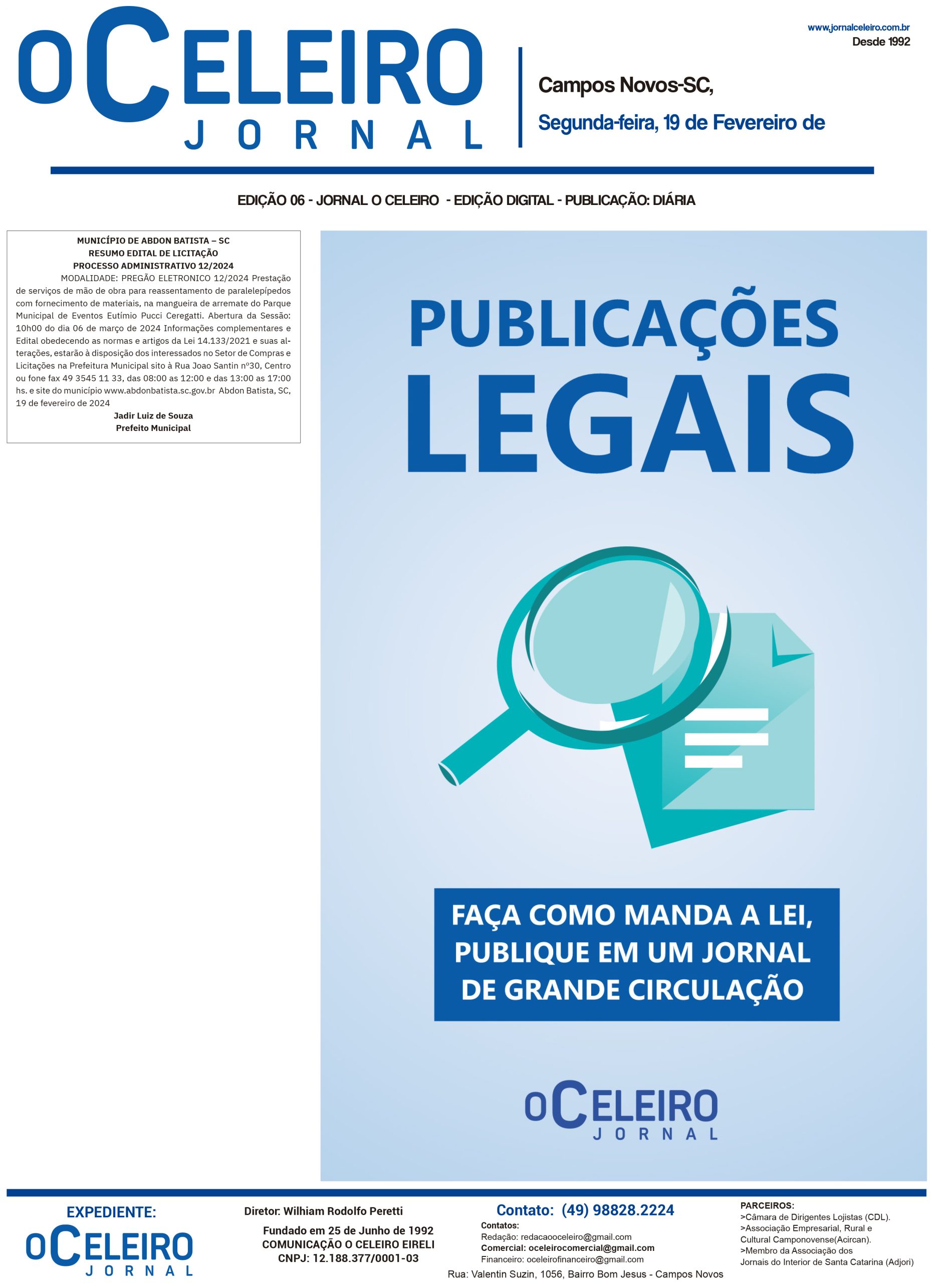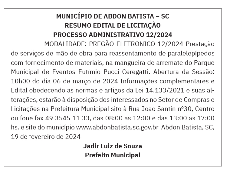 MUNICÍPIO DE ABDON BATISTA – EDITAL DE LICITAÇÃO – 12/2024