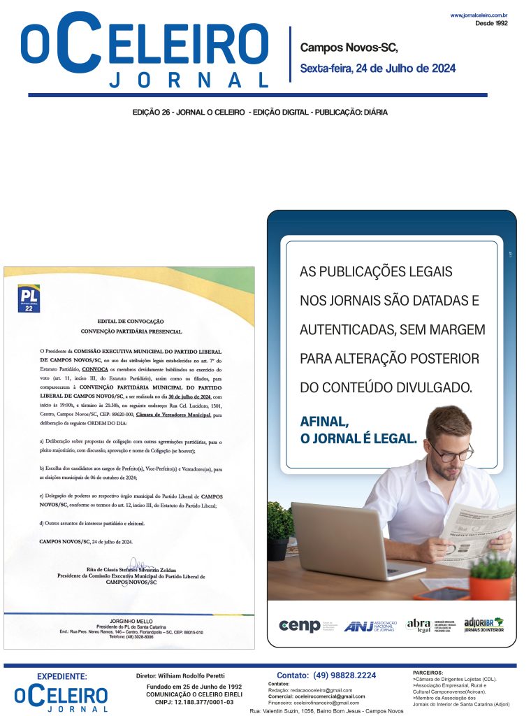 Edital de Convocação para Convenção Partidária Presencial – PL Redação 2 anos atrás ACESSE O PDF COMPLETO – CLIQUE AQUI