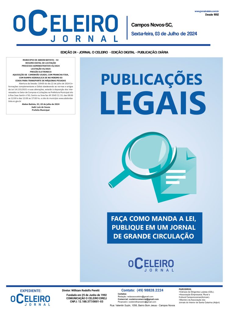 MUNICIPIO DE ABDON BATISTA – SC: PROCESSO ADMINISTRATIVO 41/2024 Redação 2 anos atrás Acesse o PDF COMPLETO –CLIQUE AQUI