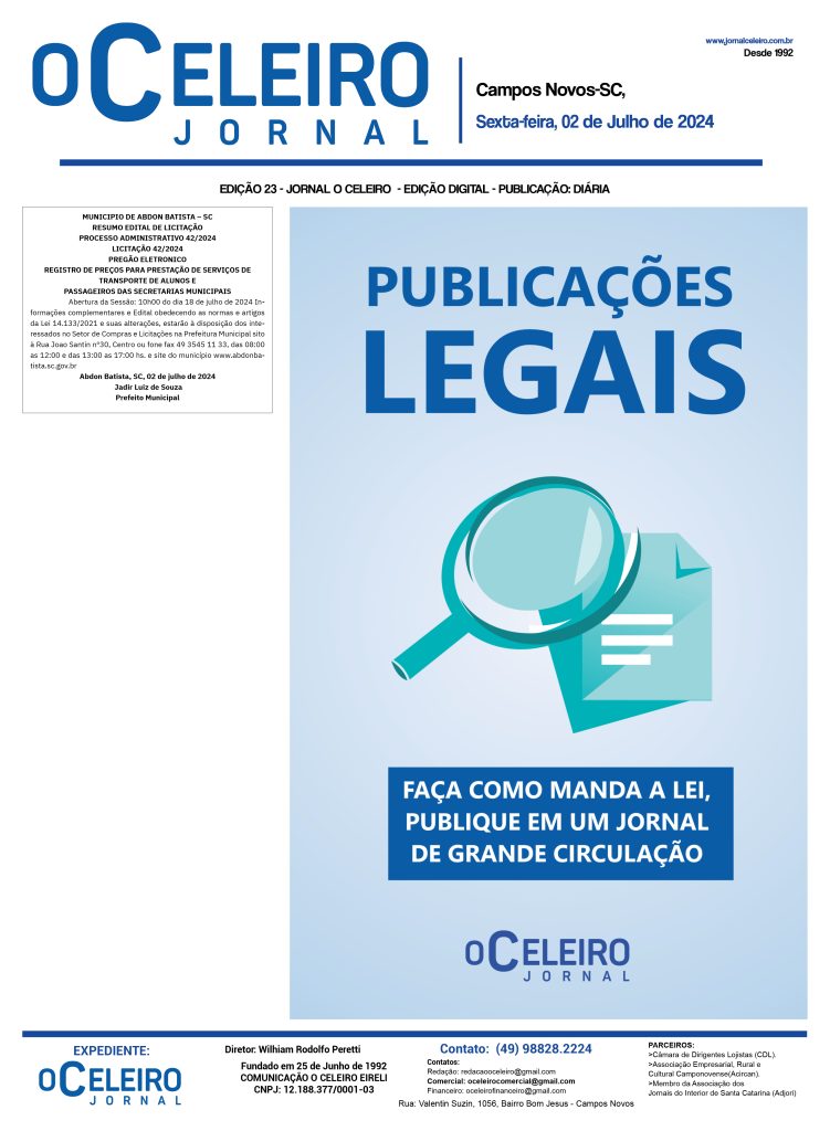 MUNICIPIO DE ABDON BATISTA – SC: PROCESSO ADMINISTRATIVO 42/2024 Redação 2 anos atrás ACESSE O PDF COMPLETO – CLIQUE AQUI