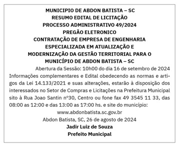MUNICIPIO DE ABDON BATISTA – SC – PROCESSO ADMINISTRATIVO 49/2024