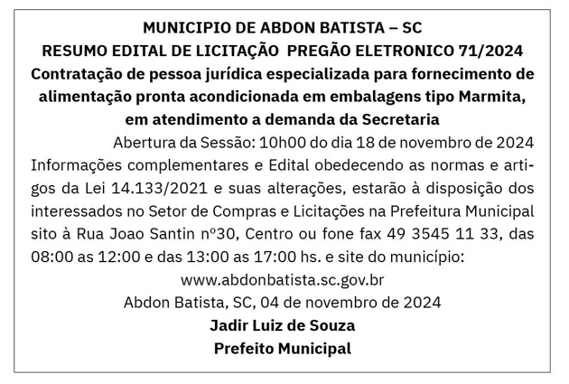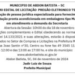 MUNICIPIO DE ABDON BATISTA – SC: PREGÃO ELETRONICO 71/2024