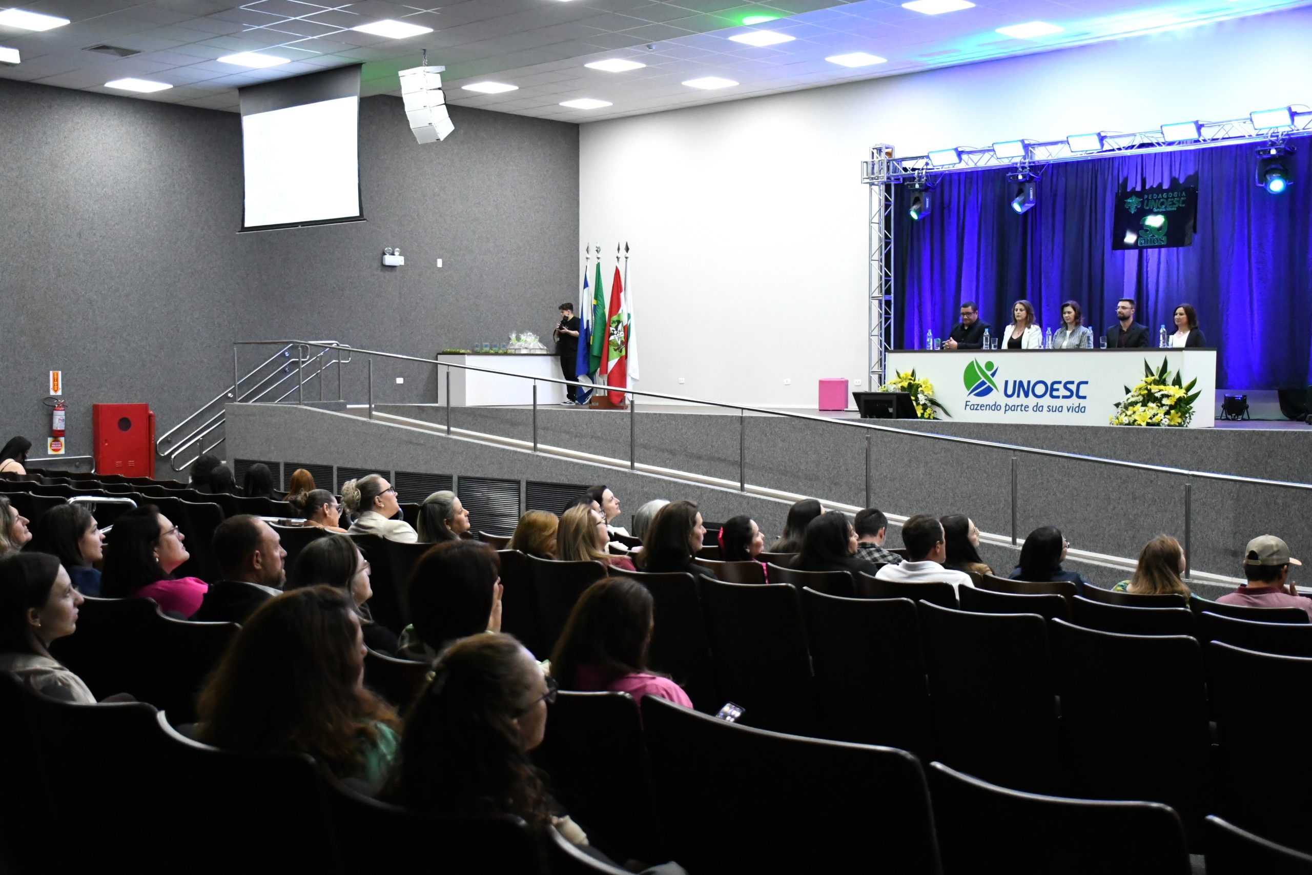 A Unoesc Campos Novos celebrou, na noite de quarta-feira (15), no Auditório Athos de Almeida Lopes, os 30 anos do curso de Pedagogia. A solenidade reuniu dirigentes, colaboradores, professores, estudantes, ex-coordenadores e egressos, além de autoridades locais e regionais e da comunidade em geral.