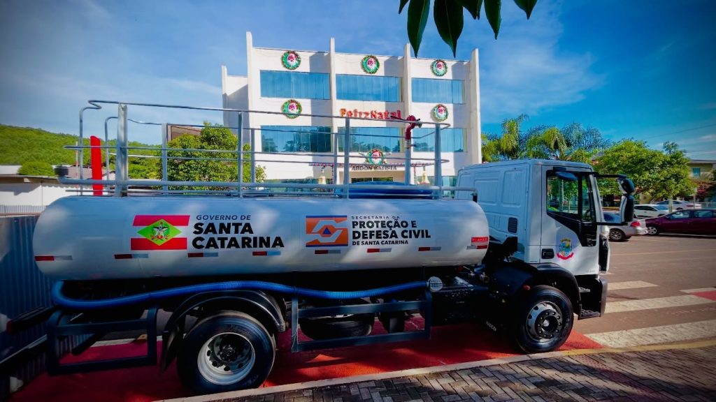 A Administração Municipal, por meio da Coordenadoria Municipal de Proteção e Defesa Civil, agradece ao Governo do Estado de Santa Catarina, em nome do governador Jorginho Mello, o repasse de um caminhão-pipa zero quilômetro ao nosso município.