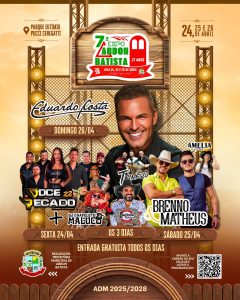 - 21h00: Show Nacional com Eduardo Costa;